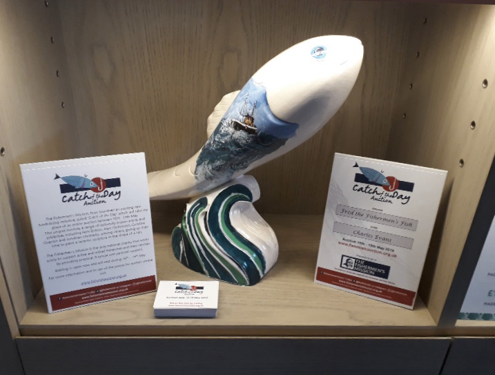 Charlie’s Fish for the Fisherman’s Charity, Fishmish, (www.fishermensmission.org.uk) has been named Fred the Fish and Jill (the owner of the famous fish restaurants in Padstow ) has chosen to display it before the auction in May. Well done, Fred. And Charlie!