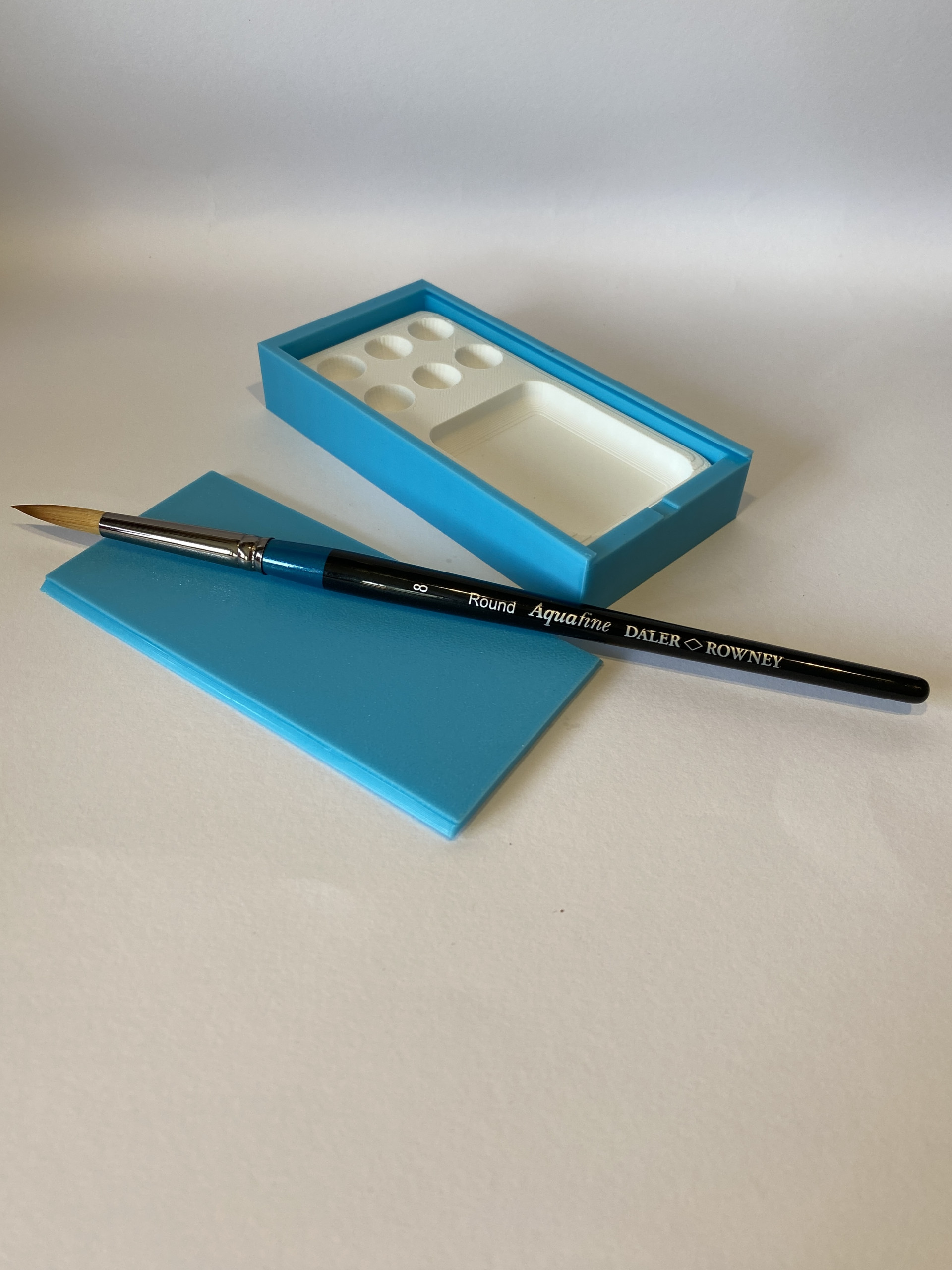 This is a palette small enough to slip into your pocket or bag while you are out and about. Carry a brush and a sketch book (see sketchbook page) or a set of postcard watercolour cards (see on the paper and canvas page) and you are ready to strike when the opportunity arises to capture a scene or a moment in time.