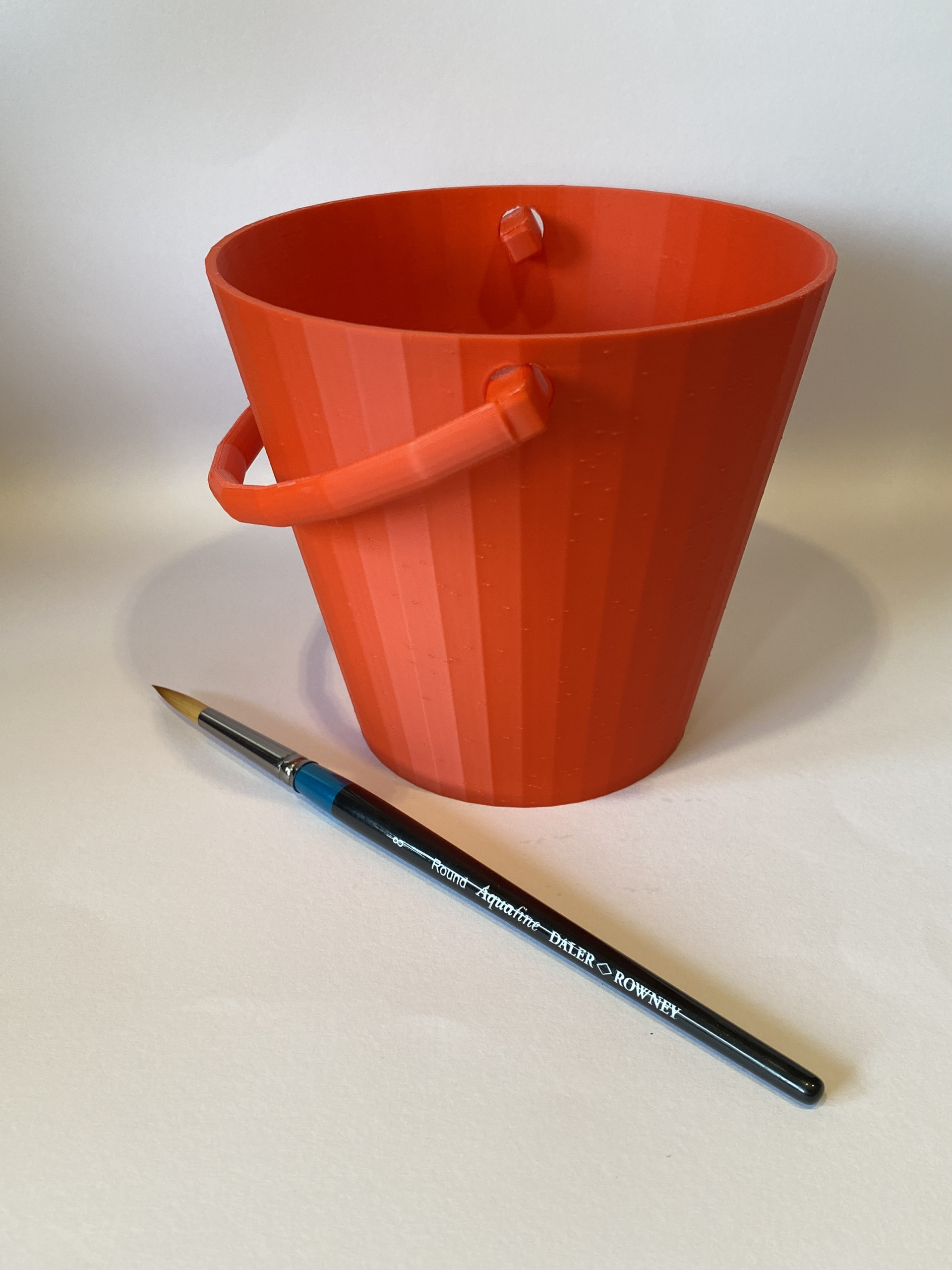 The buckets are 5 inches high and 5 inches across the top and very light but stable and sturdy. They take 4 hours to make and each one is printed individually by myself. A work of art, really!