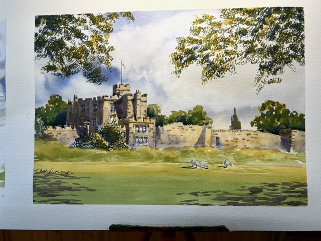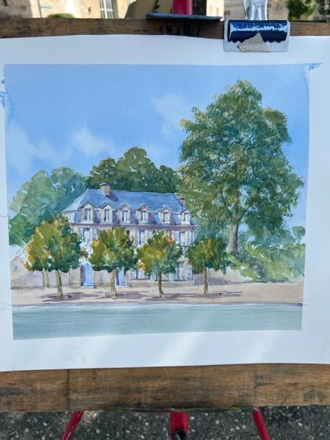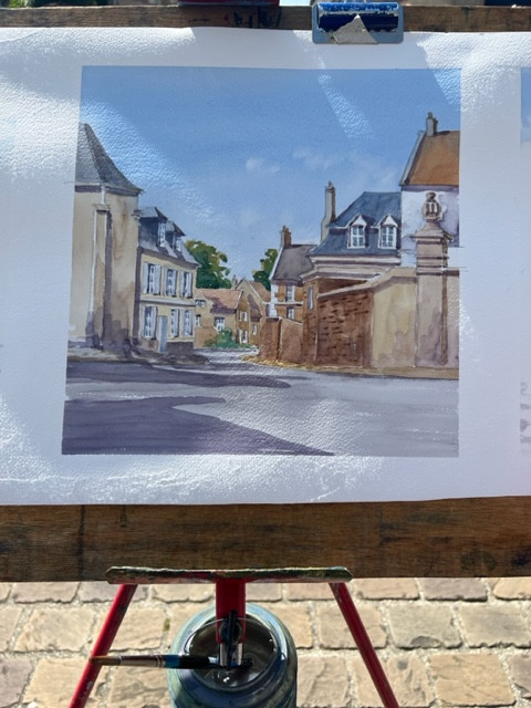 In June/July, we held our workshops in the local village hall. The weather was good enough to paint outside some days. On other days there was a quick trip to take photographs and then it was back to the hall to develop the paintings,