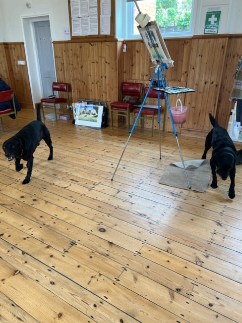 It was quite a doggy workshop. Toby was very interested in the art and came to sit with me. Frank and Bert came to inspect the premises.